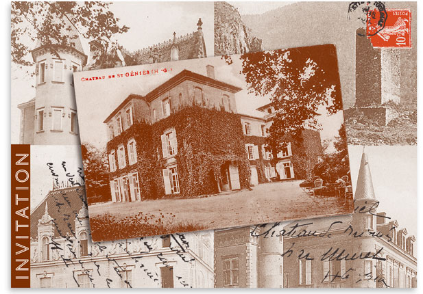 Carton d'invitation pour une exposition de cartes postales anciennes - Château de Loubens (Haute-Garonne)