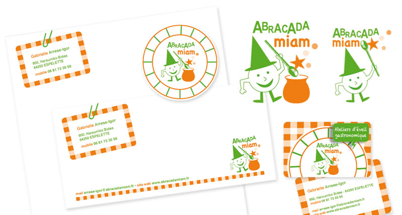 Conception dun logo et décllnaisons pour "Abracadamiam", atelier d'éveil gastronomique