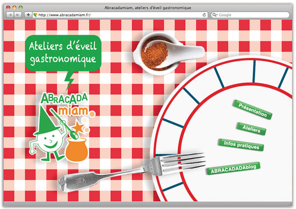 Conception graphique et réalisation du site "abracadamiam, ateliers d'éveil culinaire"-